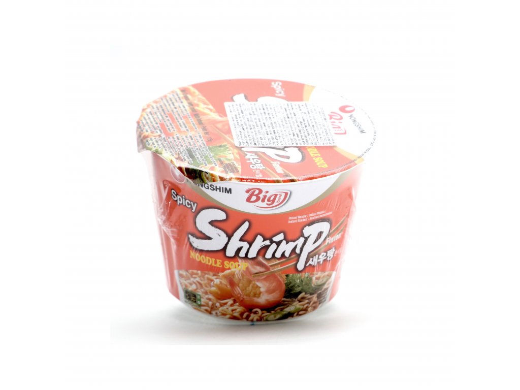 Veľká miska instantných rezancov s krevetovou príchuťou.